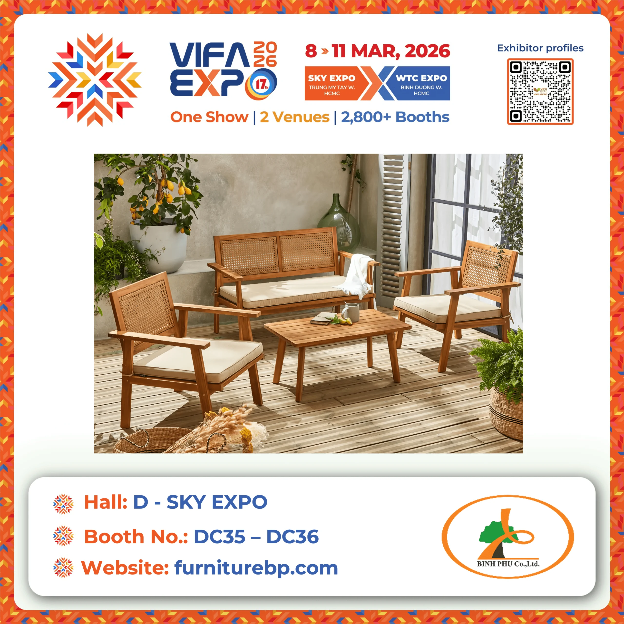 Binh Phu Company Limited, established in 2002, is a leading manufacturer of premium outdoor wooden furniture in Vietnam. With over 20 years of experience, we specialize in eco-friendly products such as sofa sets, dining sets, benches, and sun loungers. Our factory is certified by BSCI and ISO 9001, ensuring international quality standards. Using responsibly sourced timber, we focus on sustainability, durability, and craftsmanship. Trusted by global brands, Binh Phu continues to build long-term partnerships and deliver high-quality outdoor furniture solutions for homes, resorts, and commercial spaces worldwide – where craftsmanship meets reliability.