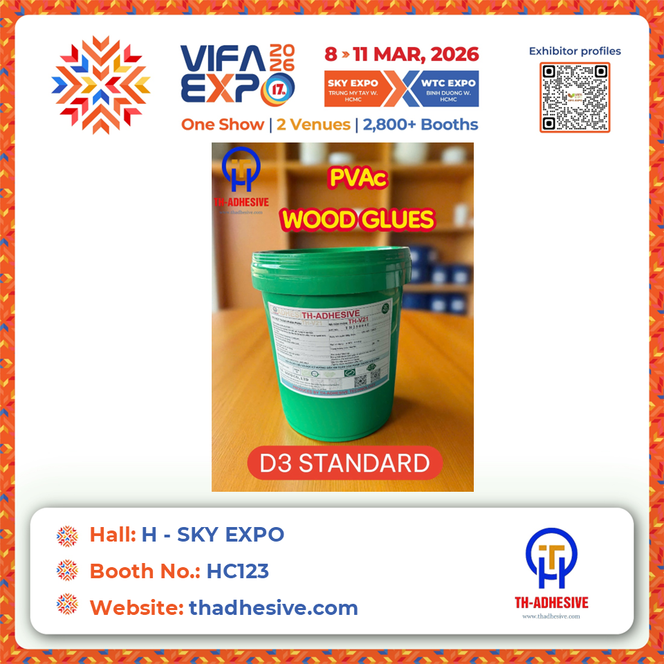 TH ADHESIVE the first company in Vietnam specializing in the production of 1-compoment Poly-vinyl Acetate (PVAc) glue according to D3 standards and safe products certified by REACH STANDARD, Welcomed by the European market.